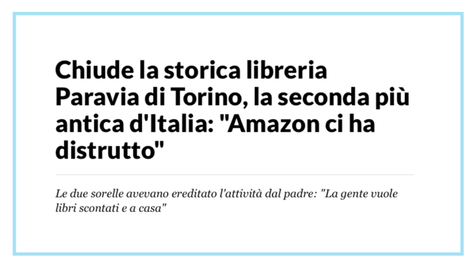 Secondo le due sorelle titolari la colpa sarebbe di Amazon e del cliente che preferisce ricevere i libri a casa ed ad un costo più basso.