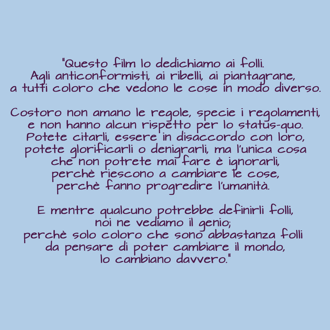 ” Tutti pensano di accumulare oggetti e cose, dimenticando che lo scopo della vita è quello di accumulare emozioni, sorrisi, istanti felici.”